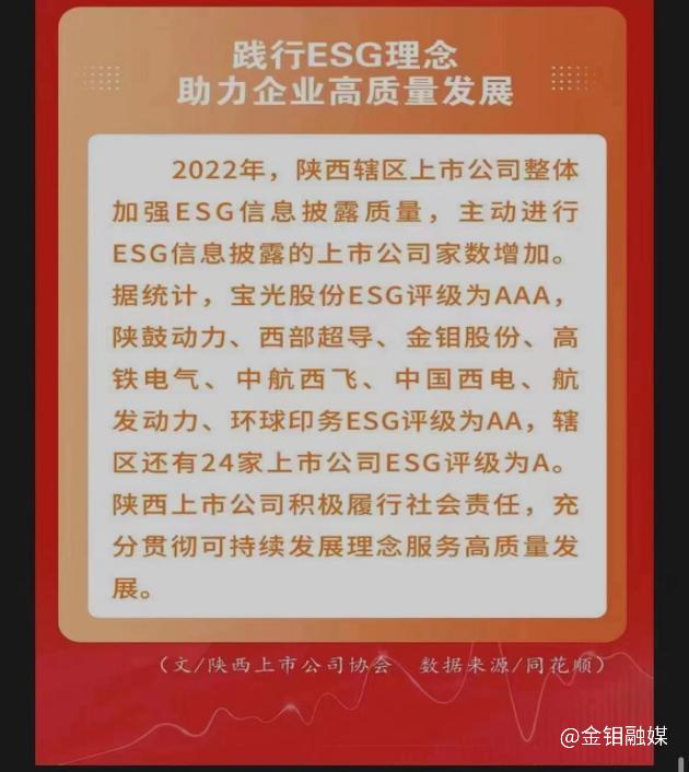 近日,金鉬股份榮獲陜西轄區(qū)上市公司環(huán)境、社會(huì)及治理(ESG)信息披露綜合評(píng)級(jí)AA,并入選2022年中國(guó)上市公司ESG指數(shù)采礦業(yè)十佳榜單,同期公司股票時(shí)隔兩年半后再次回歸MSCI(明晟)新興市場(chǎng)指數(shù),標(biāo)志著公司ESG管理獲得肯定,極大提升了公司形象。