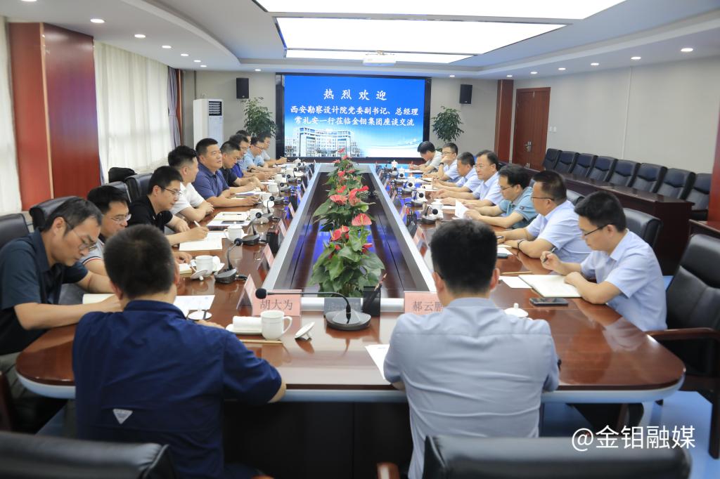7月10日,西安勘察設(shè)計(jì)院黨委副書記、總經(jīng)理常禮安一行來金鉬集團(tuán)座談交流。金鉬集團(tuán)黨委書記、董事長嚴(yán)平,副總經(jīng)理馬祥志、總會(huì)計(jì)師李宏偉及相關(guān)部室負(fù)責(zé)人一同座談。