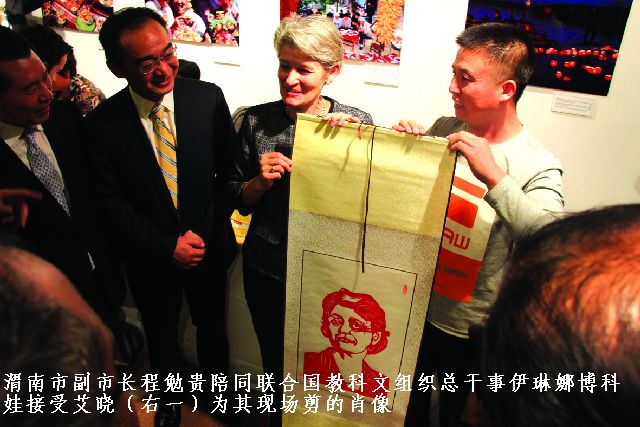 日前,受聯(lián)合國教科文組織邀請,50余名渭南民間非遺傳承人前往法國巴黎,展示華陰老腔、剪紙、面花等非物質(zhì)文化遺產(chǎn),受到法國當?shù)孛癖姷臒崃易放?。作為唯一一名代表剪紙藝術(shù)前往巴黎的剪紙藝術(shù)家,我公司鉬爐料產(chǎn)品部艾曉在活動現(xiàn)場為聯(lián)合國教科文總干事伊琳娜?博科娃女士剪的人像惟妙惟肖,讓所有圍觀的巴黎市民驚嘆不已,甚至有人要求現(xiàn)場拜師學藝。